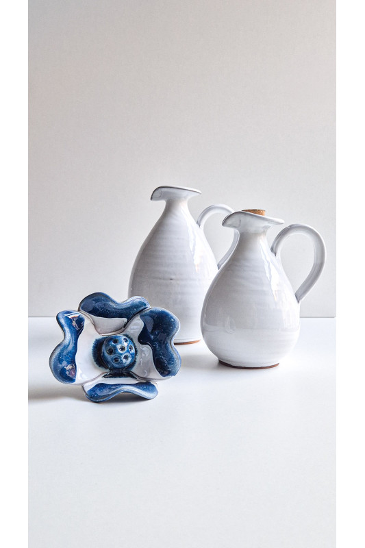 Kwiat ceramiczny średni "Biały z niebieskim''. Ręcznie robiona ceramika z Krety, 5055