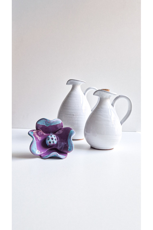 Kwiat ceramiczny średni "Fioletowy z niebieskim". Ręcznie robiona ceramika z Krety, 5058