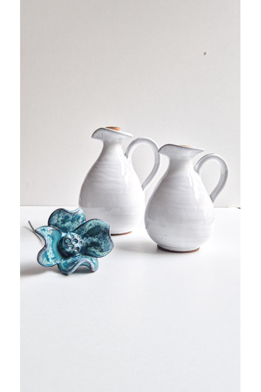 Kwiat ceramiczny mały "Turkusowy z białym". Ręcznie robiona ceramika z Krety, 5067