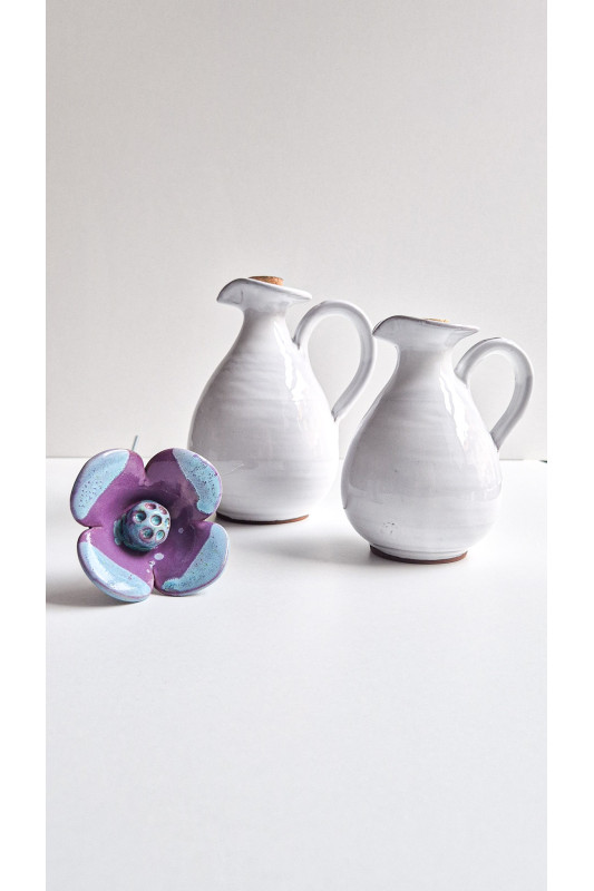Kwiat ceramiczny mały "Fioletowy z niebieskim". Ręcznie robiona ceramika z Krety, 5070