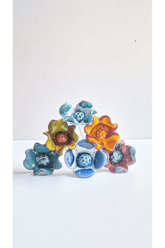 Kwiat ceramiczny mały "Turkusowy". Ręcznie robiona ceramika z Krety, 5072