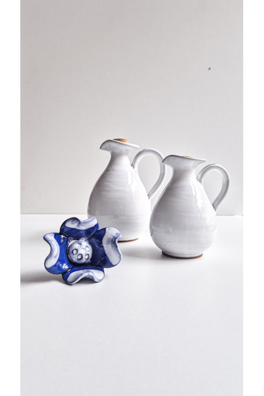 Kwiat ceramiczny mały "Kobalt z białym". Ręcznie robiona ceramika z Krety, 5079