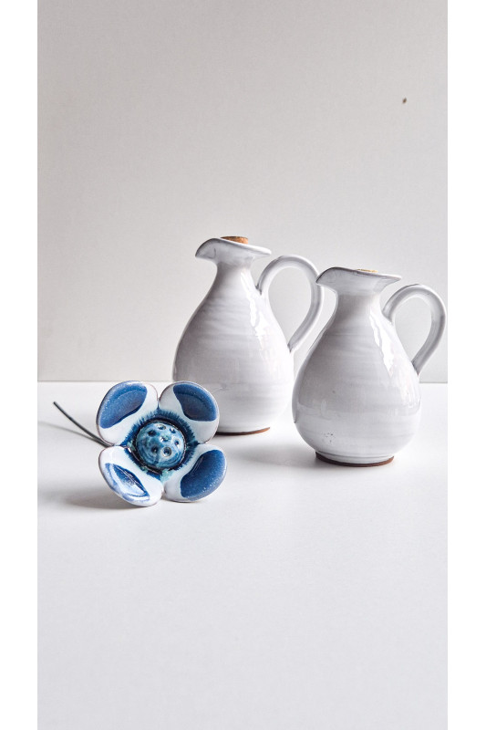 Kwiat ceramiczny mały "Biały z niebieskim". Ręcznie robiona ceramika z Krety, 5081