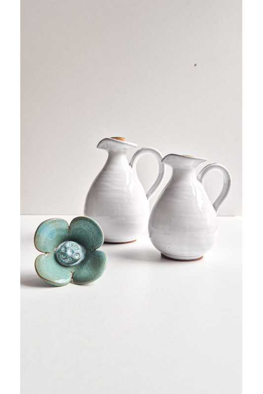 Kwiat ceramiczny mały "Piaskowy turkus". Ręcznie robiona ceramika z Krety, 5083