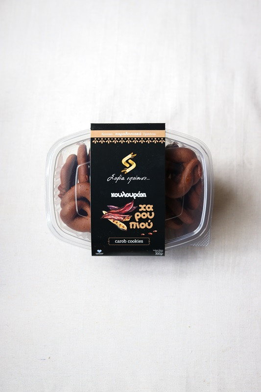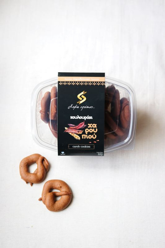 Tradycyjne i naturalne koulourakia - ciasteczka z karobem z Krety. Ręcznie robione przez naszą sąsiadkę Sofię w małej wiosce Hrisavgi z zachowaniem oryginalnych receptur. Tworzone wyłącznie z użyciem najlepszej jakości składników: Oliwy Extra Virgin z Krety, soku z dojrzałych pomarańczy i cynamonu . Prosty, naturalny skład bez konserwantów.