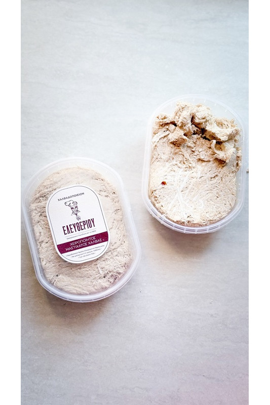 Tradycyjna, naturalna, ręcznie robiona chałwa z Grecji. Wytwarzana w rodzinnej manufakturze Halvas Eleftheriou w miejscowości Drama w regionie Tracji. Tworzona według tradycyjnej receptury, z ekstraktem z mydlnicy lekarskiej, wyłącznie przy użyciu najwyższej jakości składników, chałwa z Halvas Eleftheriou wytwarzana jest ręcznie, dzięki czemu ma charakterystyczną kruchą i lekką strukturę oraz niepowtarzalny smak.