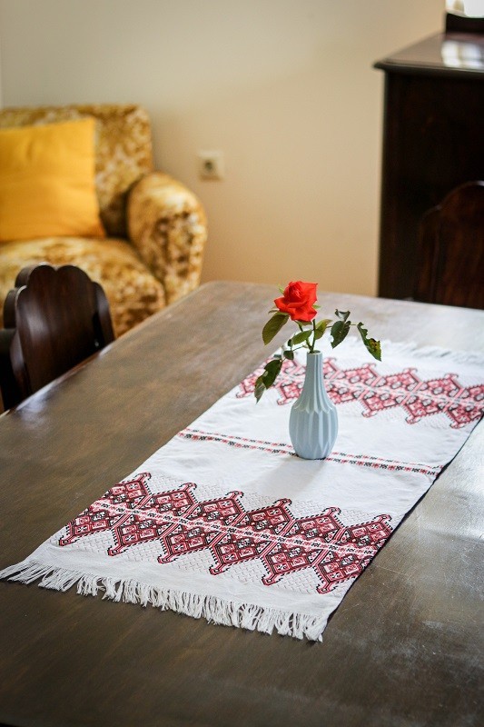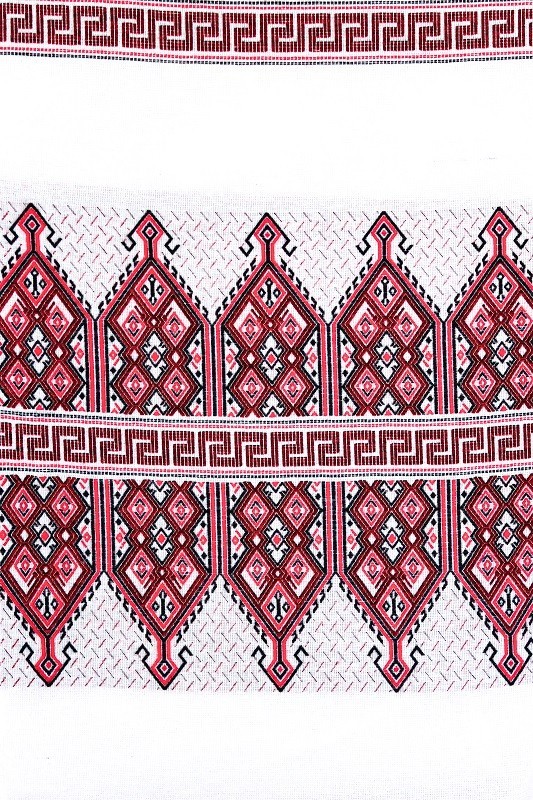 Bieżnik lub narzuta w tradycyjny biało-czerwony kreteński wzór.